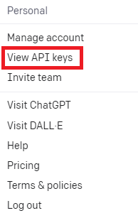 ChatGPT API를 사용하기위해서는 우선 API Key를 발급받아야한다. OpenAI 사이트에 들어간후 로그인을 하고 우측 상단 Personal을 클릭한후 View API Key 란에 들어가자.