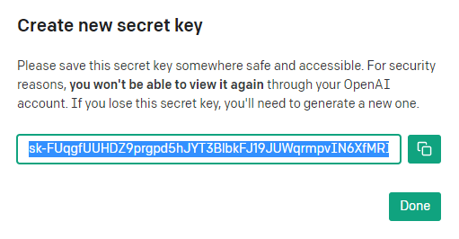 생성된 key 정보를 복사하고 어딘가에 저장해두자. 이 key 정보가 있어야 API 요청을 할 수 있다. 이 key는 타인에게 노출되지 않도록하자.