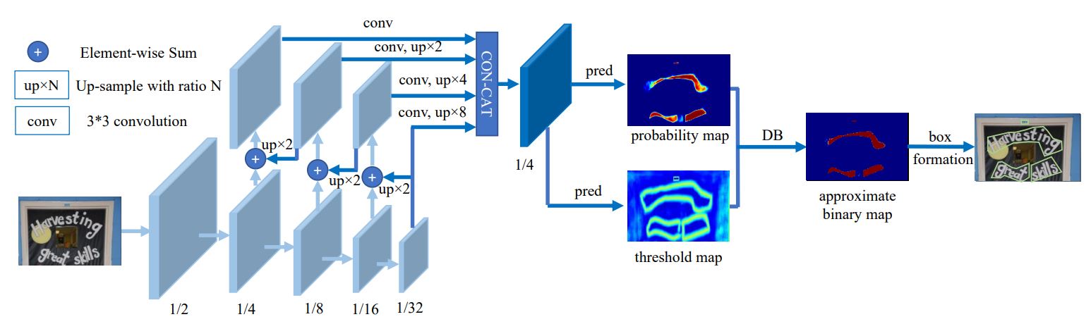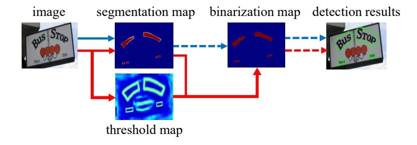 Differentiable Binarization 모델은 대략적으로 다음과 같은 과정을 거치게 됩니다.