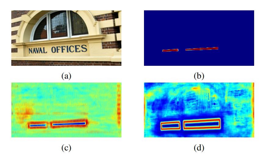위 사진은 각각 (a) 입력 이미지. (b) probability map. (c) threshold map without supervision. (d) threshold map with supervision 입니다. text border는 text instance를 분할하는 데 사용되며 treshold map은 binarization를 위한 임계값으로 제공됩니다. threshold map with/without supervision의 경우 얼핏보면 이미지에서 모양이 비슷해보일 수도 있지만 threshold map with supervision이 아래 표와 같은 더 높은 성능을 달성했다고 합니다.